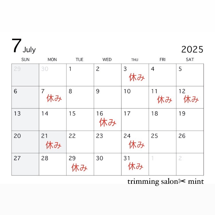 7月・8月の営業スケジュールのお知らせです🗓📢先日お知らせしましたが、8月は隣接する家屋の大規模な工事のため、イレギュラーな営業日程となっております。そのため、【8月の