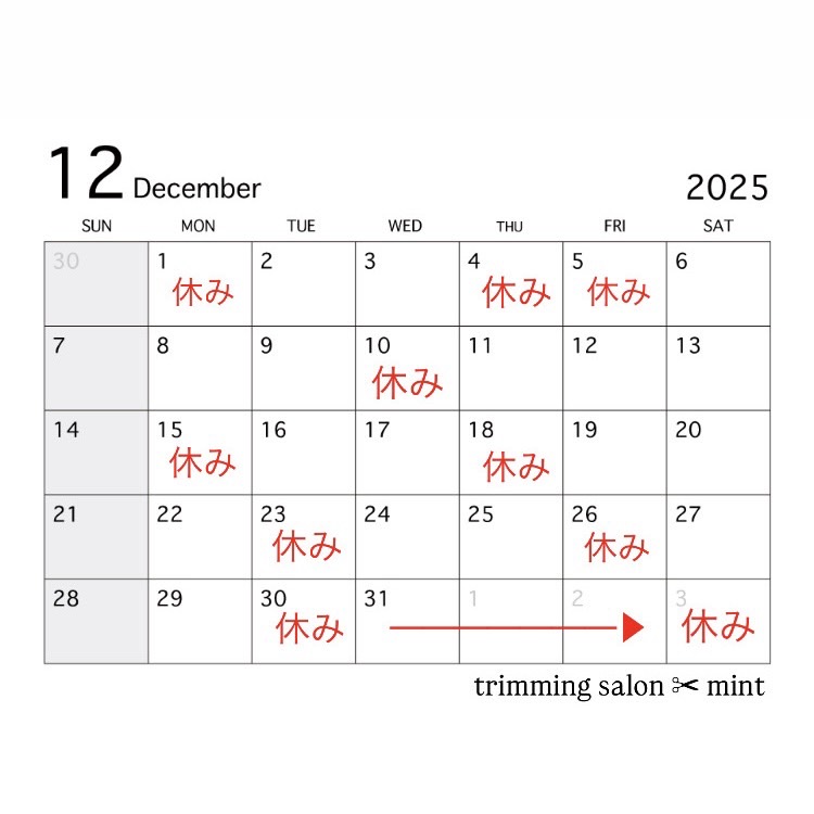 例年12月下旬のみ先行予約を受け付けておりましたが、今年は12月すべて、1匹につき割増500円で先行予約可能にさせていただきます。【10月1日(水) 19:00~】12月のご予約受け付けを開始いたしま